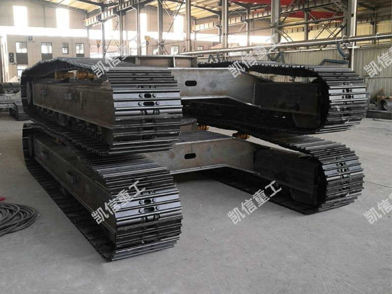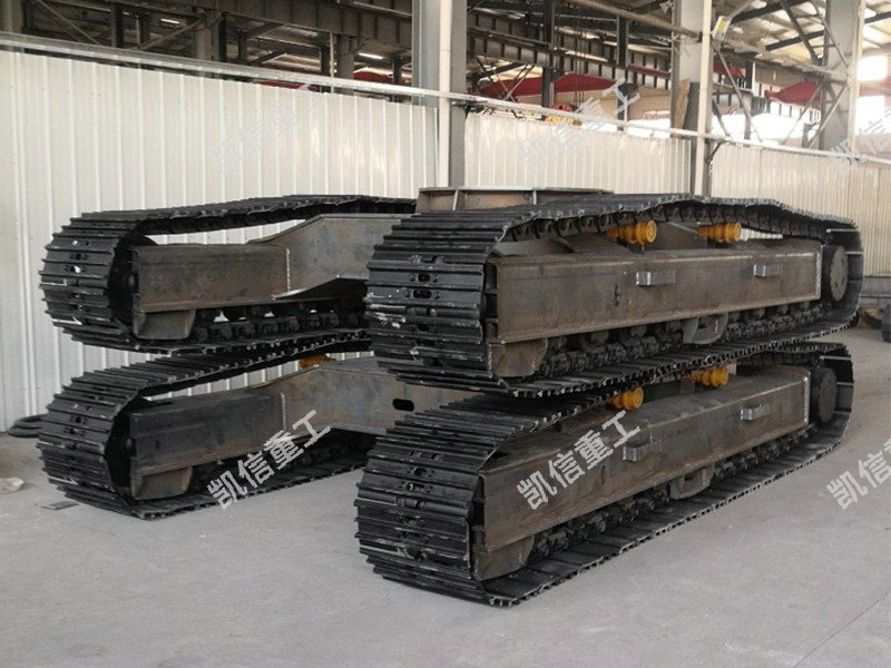 履帶底盤分為鋼制履帶底盤和橡膠履帶底盤兩類產品,鋼制底盤承載在2噸—12噸之間,橡膠底盤承載能力在0.9噸—12噸之間,不同主機工作需求,履帶板寬度,底盤,底盤總寬、底盤配套件用戶需要進行核實。履帶底盤的支重輪